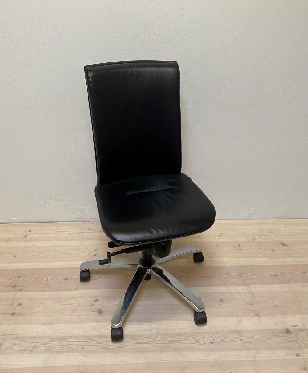 König+Neurath kontorstol i sort læder med høj ryg og krom stel.