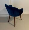 Sofacompany Vica spisetol / mødestol / konferencestol polstret i blå velour og med ben i valnød.
