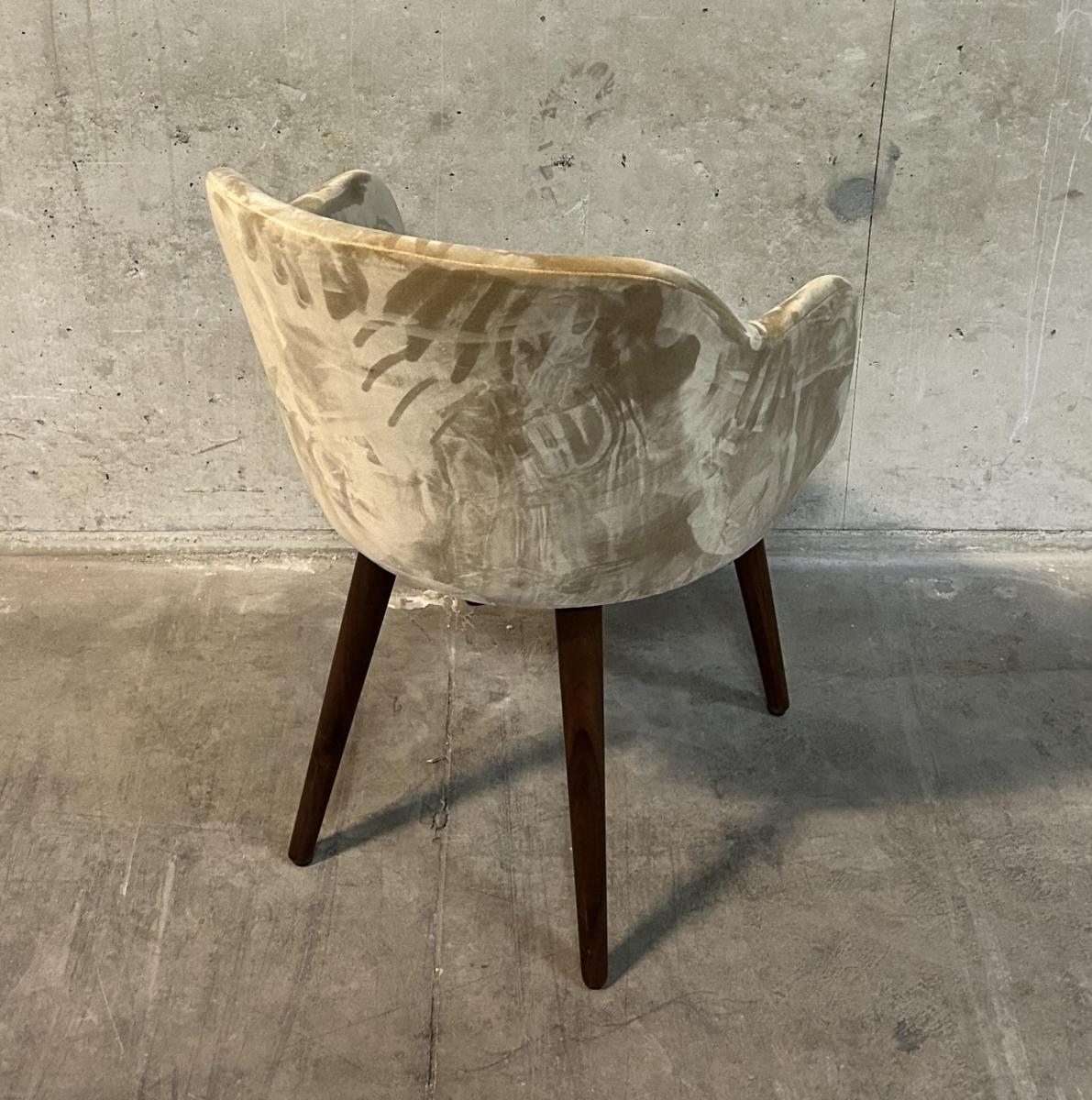 Sofacompany Vica spisetol / mødestol / konferencestol polstret i beige og med ben i valnød.