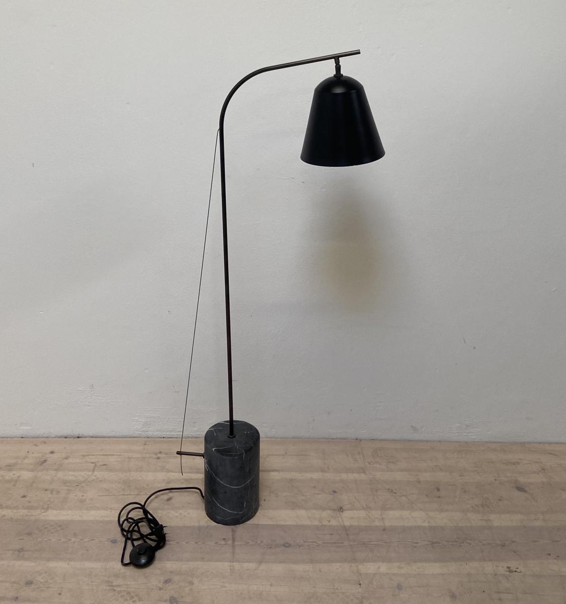 Norr11 Line One gulvlampe / standerlampe med marmorfod og skærm i sort lakeret aluminium. Lampen er 140 cm. høj.